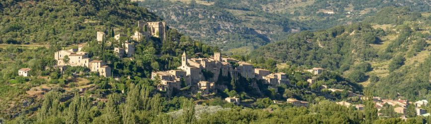 Montbrun-les-Bains is a picturesque village perched opposite Mont Ventoux. Its medieval streets, ruined castle, and local shops create a warm and authentic atmosphere.